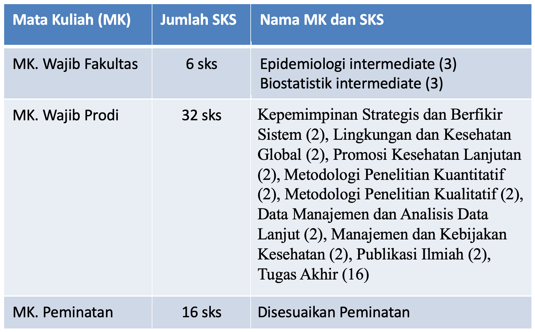 Profil Lulusan secara umum menghasilkan magister yang mampu mengembangkan program intervensi atas masalah kesehatan dengan berbasis bukti.