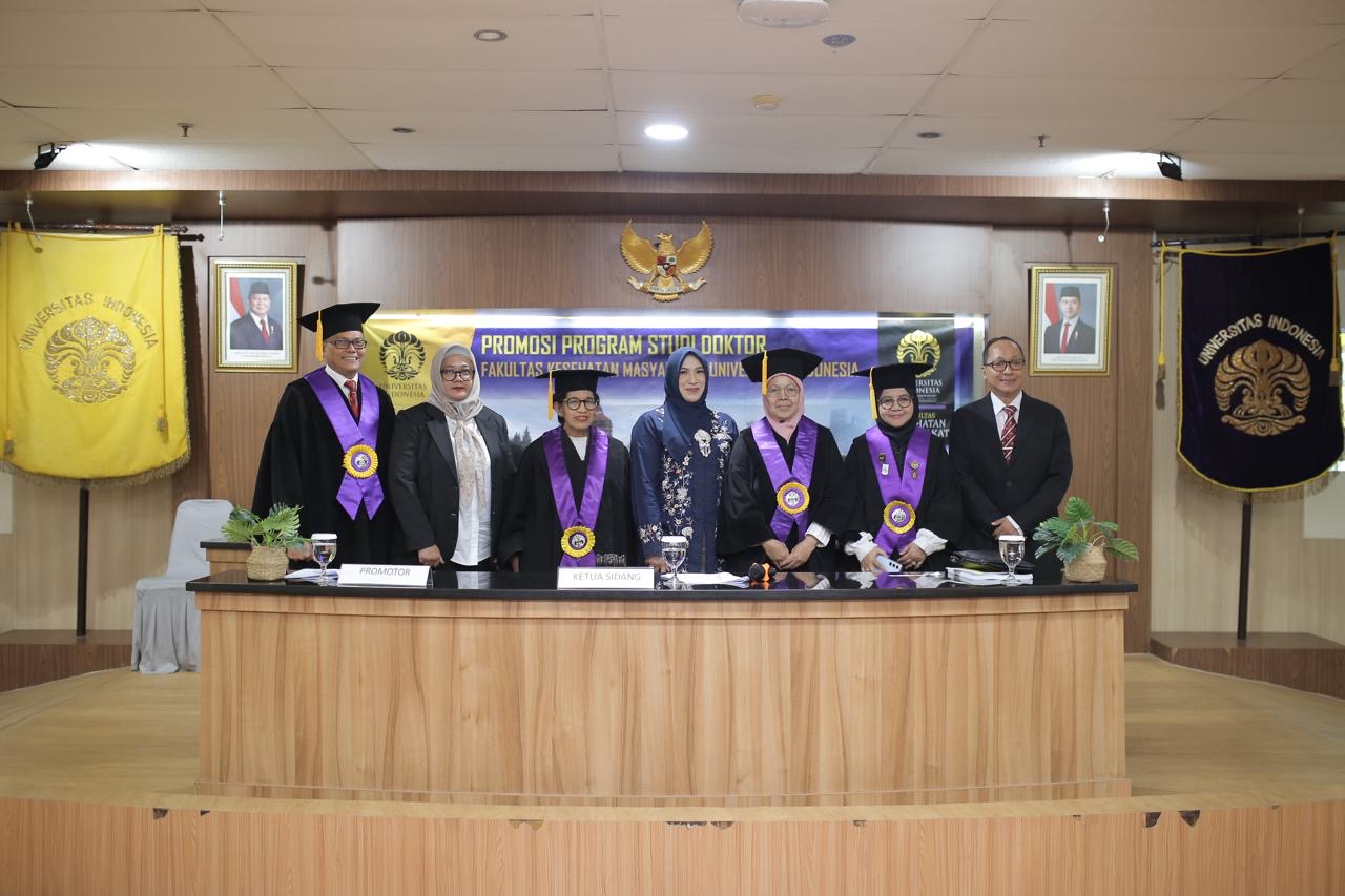 Sidang promosi doktor dipimpin oleh dewan penguji yang terdiri dari Prof. Dr. Dra. Dumilah Ayuningtyas, M.A.R.S (Ketua Sidang), Prof. Dr. dr. Ratna Djuwita, M.P.H (Promotor), Prof. Dr. Besral, S.K.M., M.Sc dan dr. Triya Damayanti, Ph.D., Sp.P(K) (Ko-Promotor), serta para penguji Prof. Dr. Dra. Evi Martha, M.Kes, Dr. rer. Medic. Putri Bungsu, S.K.M., M.Epid, Dr. Eva Susanti, S.Kp, M.Kes, dr. Arief Bakhtiar, Sp.P(K), FAPSR, dan Dr. Ir. Chandra Rudyanto, MPH.