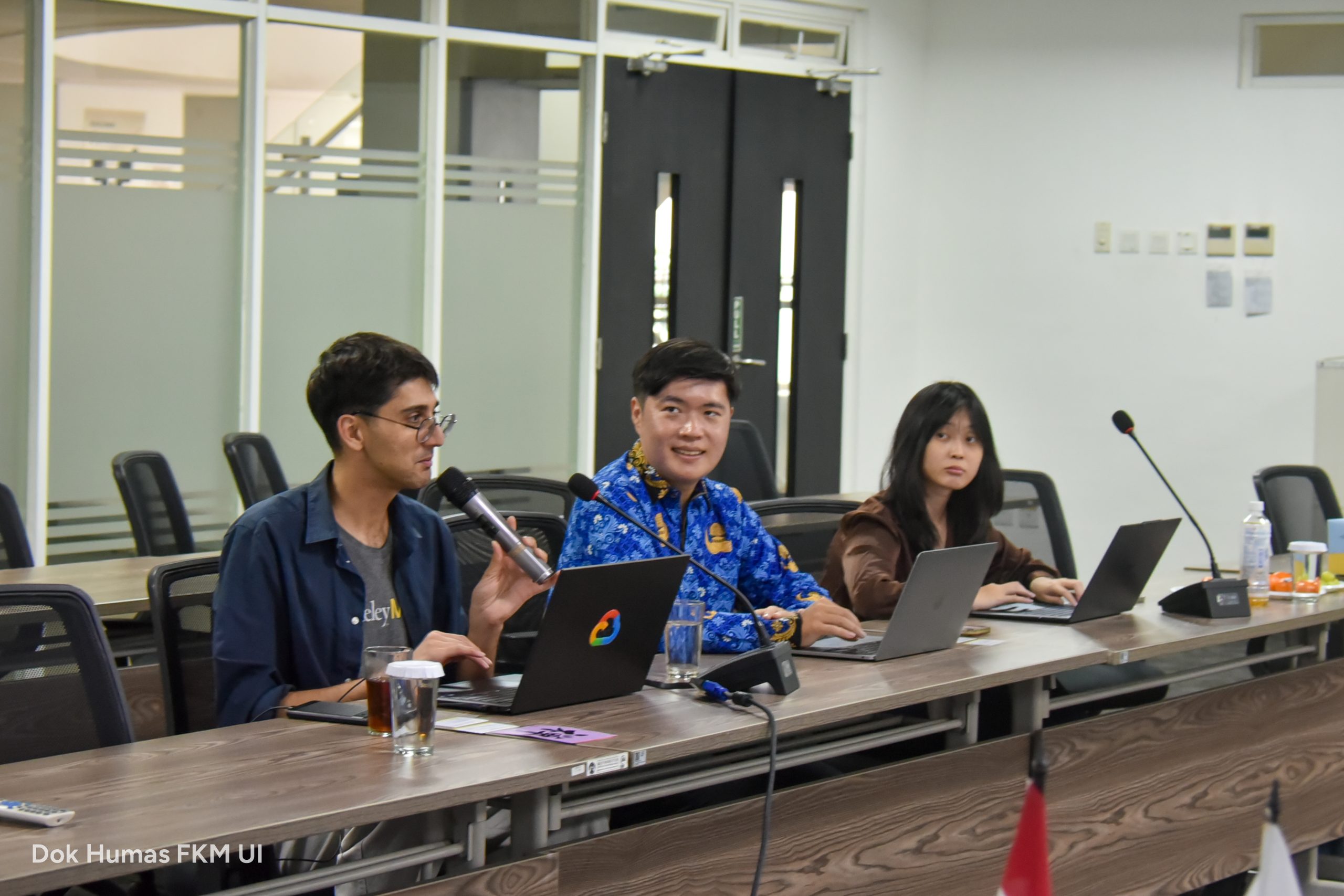 Dalam sesi tanya jawab, Sekretaris Departemen Kesehatan Lingkungan, Fitri Kurniasari, menanyakan kemungkinan pengumpulan data tanpa batuk paksa. Virufy menjelaskan bahwa kualitas model AI sangat ditentukan oleh konsistensi karakteristik batuk, sehingga batuk tidak terkontrol cenderung menurunkan sensitivitas dan spesifisitas. Menanggapi hal ini, Prof. Mondastri menegaskan posisi FKM UI dalam kolaborasi. “FKM UI ingin berperan setara sebagai sesama peneliti, bukan hanya sebagai data collectors,” jelas Prof. Mondastri. Virufy kemudian menyampaikan komitmennya bahwa FKM UI akan dilibatkan secara penuh dalam tahap penelitian bersama, termasuk co-design riset dan publikasi ilmiah, serta berbagi perbandingan hasil riset dari negara lain agar penelitian dapat terintegrasi secara global.