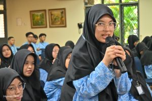 Lebih lanjut, Dr. Laila menjelaskan profil FKM UI, program studi sarjana, serta kurikulum yang dirancang adaptif terhadap tantangan kesehatan masyarakat baik di tingkat nasional maupun global. Para siswa juga memperoleh informasi mengenai jalur seleksi mahasiswa baru, biaya pendidikan, fasilitas penunjang pembelajaran, serta berbagai skema beasiswa yang tersedia.