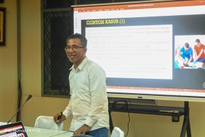 Dalam sesi lanjutan, Yosef menguraikan enam tahapan analisis SROI yang meliputi penetapan lingkup, identifikasi stakeholder, pemetaan outcome, seleksi dampak, pembuktian dan valuasi, hingga penghitungan rasio SROI. Peserta juga diperkenalkan pada berbagai cara melakukan financial valuation melalui market-based proxy, stated preference, dan revealed preference. Ia menekankan pentingnya memvalidasi nilai dampak dengan mempertimbangkan faktor deadweight, attribution, displacement, dan drop-off agar hasil analisis tetap akurat. “Kita harus jujur dalam menilai seberapa besar perubahan yang benar-benar disebabkan oleh program, bukan hanya kebetulan atau akibat faktor lain. Di sinilah SROI mengajarkan kita untuk tidak melakukan overclaim,” jelasnya.