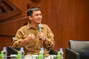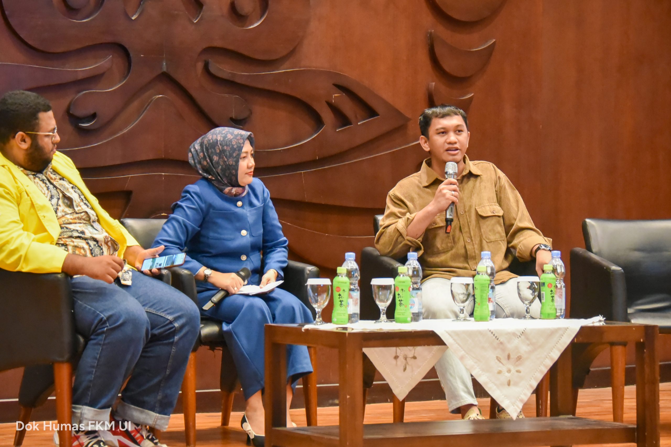 Sesi pertama sarasehan membahas isu lingkungan dan tata kelola sumber daya alam dengan menghadirkan Ir. Sigit Eliantoro, M.Sc. (Deputi Bidang Tata Lingkungan dan SDA Berkelanjutan), Aulia Furqon, S.Hut. (aktivis lingkungan), serta Wafi Syukri Baraja, Ketua Departemen Kadvomas HMP FKM UI. Para narasumber menyoroti pentingnya keadilan ekologis dan partisipasi publik dalam perumusan kebijakan pembangunan. “Lingkungan yang sehat adalah pondasi keadilan sosial. Mahasiswa memiliki posisi strategis untuk memastikan kebijakan pembangunan tidak mengorbankan keseimbangan ekosistem,” ujar Aulia. Sementara itu, Ir. Sigit menegaskan pentingnya sinergi antara riset akademik, kebijakan pemerintah, dan advokasi masyarakat sebagai kunci menuju tata kelola lingkungan yang partisipatif dan transparan. “Kami di pemerintah sangat mengapresiasi ide kolaborasi ini dan terus mendorong kolaborasi multipihak agar tata kelola lingkungan menjadi lebih partisipatif dan transparan. Sinergi antara kebijakan, riset, dan advokasi masyarakat adalah kunci menuju pembangunan berkelanjutan,” tegas Ir. Sigit.