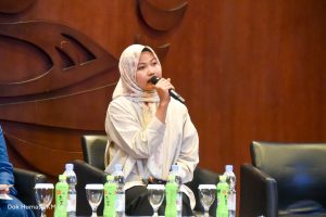 Diskusi berlanjut pada isu kebijakan kesehatan publik, dengan pemaparan Melliana Eka Cahyani, S.Tr.Gz., akademisi sekaligus ahli gizi yang menekankan pentingnya pajak dan pelabelan warna pada produk makanan/minuman berpemanis untuk mendorong perilaku konsumsi sehat. Sejalan dengan Melliana, tim advokasi mahasiswa FKM UI juga mendorong pengesahan pajak gula dan red–yellow– green labeling untuk produk berpemanis guna menekan kasus obesitas dan diabetes di Indonesia. “Konsumen berhak tahu kandungan gula dalam produk yang mereka konsumsi. Pajak dan label warna bukan pembatasan, melainkan pencegahan dini terhadap penyakit tidak menular,” jelas Wafi.