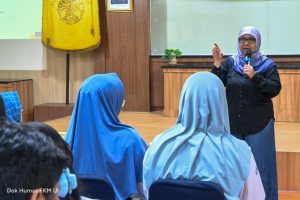 Dalam sambutannya, Dr. Laila memperkenalkan secara umum profil FKM UI serta kesempatan belajar yang terbuka luas di dalamnya. “FKM UI tidak hanya memberikan pembelajaran akademik, tetapi juga membekali mahasiswa dengan soft skills, pengalaman praktis, jejaring, dan nilai-nilai luhur untuk menjadi tenaga kesehatan masyarakat yang berdampak. Hal ini dapat diperoleh mahasiswa dengan mengikuti organisasi kemahasiswaan, magang, serta berbagai kegiatan lain seperti student mobility program ke luar negeri,” ujarnya.