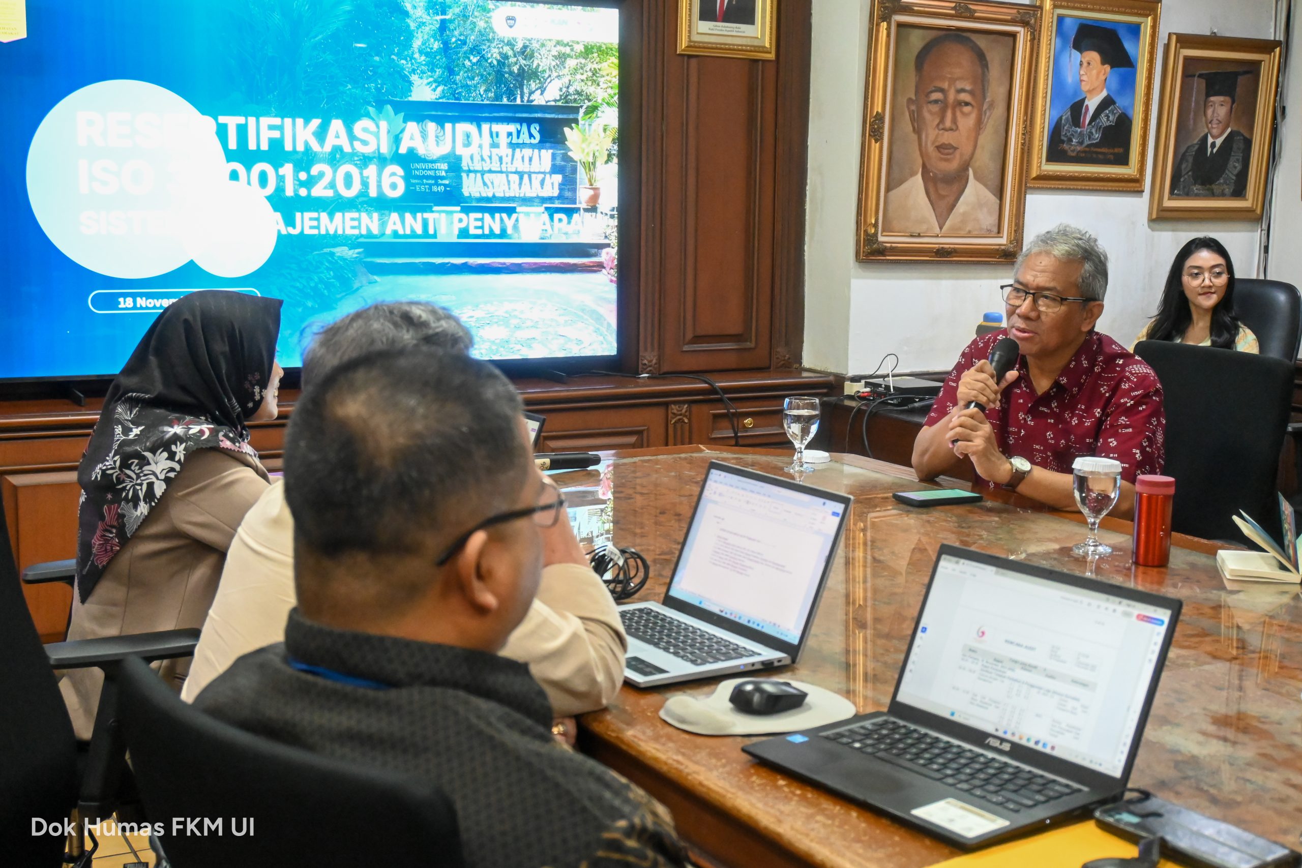 Depok, 18 November 2025 — Fakultas Kesehatan Masyarakat (FKM) Universitas Indonesia (UI) kembali meneguhkan posisinya sebagai pelopor integritas di lingkungan Universitas Indonesia melalui penyelenggaraan re-sertifikasi pertama ISO 37001:2016 Sistem Manajemen Anti Penyuapan (SMAP). FKM UI menjadi fakultas pertama sekaligus satu-satunya di UI yang memperoleh sertifikasi ISO SMAP pada tahun 2022, dan kini kembali menjalani proses re-sertifikasi sebagai bentuk konsistensi dalam menjaga tata kelola yang bersih, profesional, dan berintegritas.